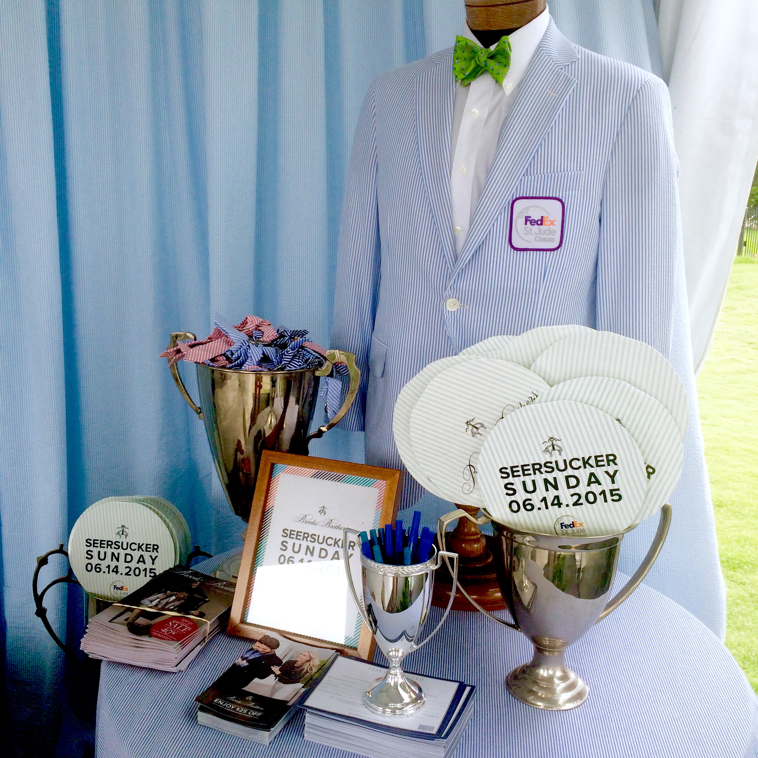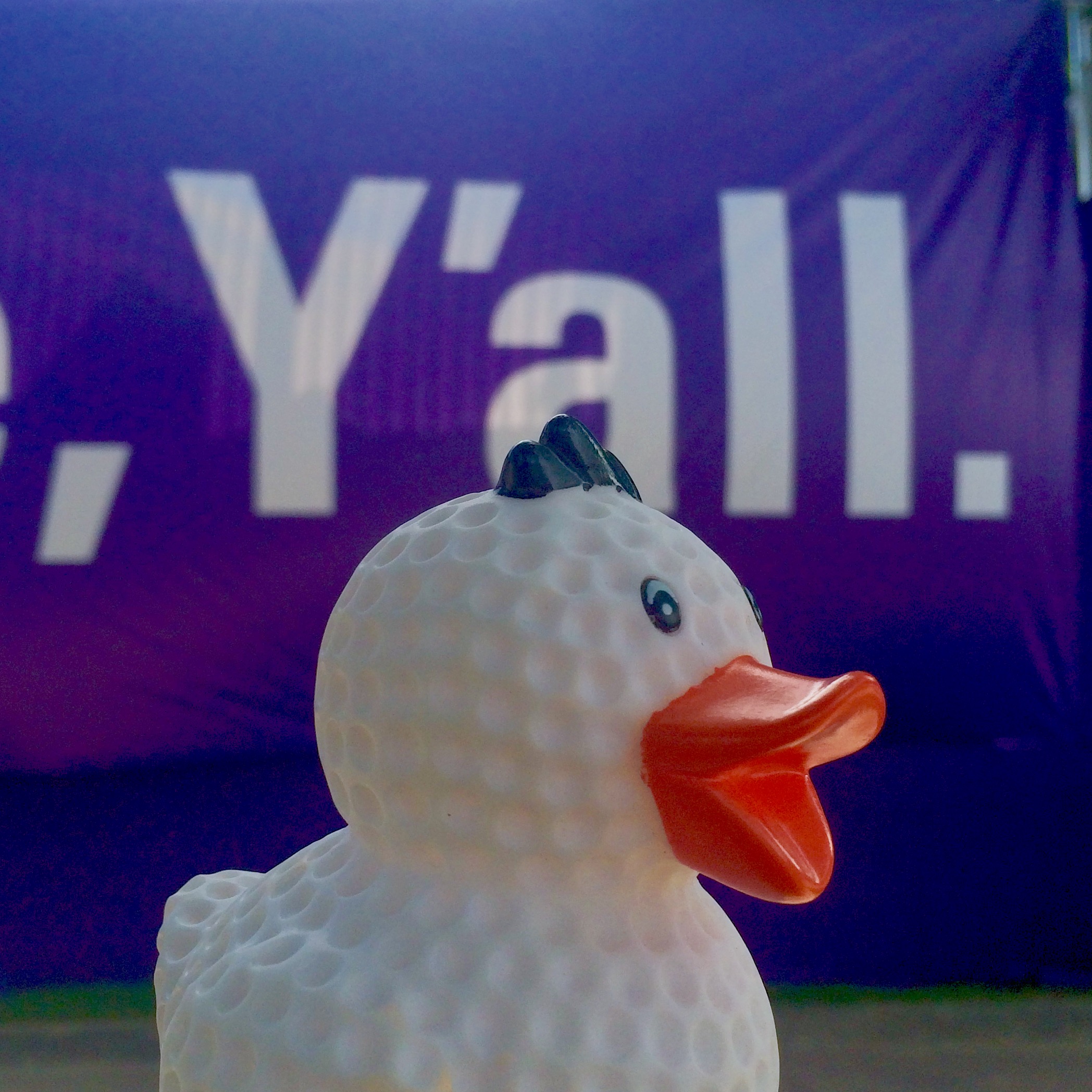 Each year, there’s a line of tents at the entrance to the tournament of sponsors showing off their wares with email sign-up sheets and freebies. Dad scoops up as many mini bottles of sunscreen as he can while I go for the koozies. The Brooks Brothers tent is always my favorite, though. Brooks Brothers is the official apparel sponsor of the tournament and they encourage spectators to “show their stripes” on Seersucker Sunday to show their support for St. Jude. I made my way to the official tournament merchandise tent that sells everything from wine glasses to Oakley sunglasses emblazoned with the tournament logo. I picked up some koozies, a fitted tee, a couple Tervis tumblers, and the cutest rubber duck I’ve ever seen. It looks like a golf ball. So. Stinking. CUTE.