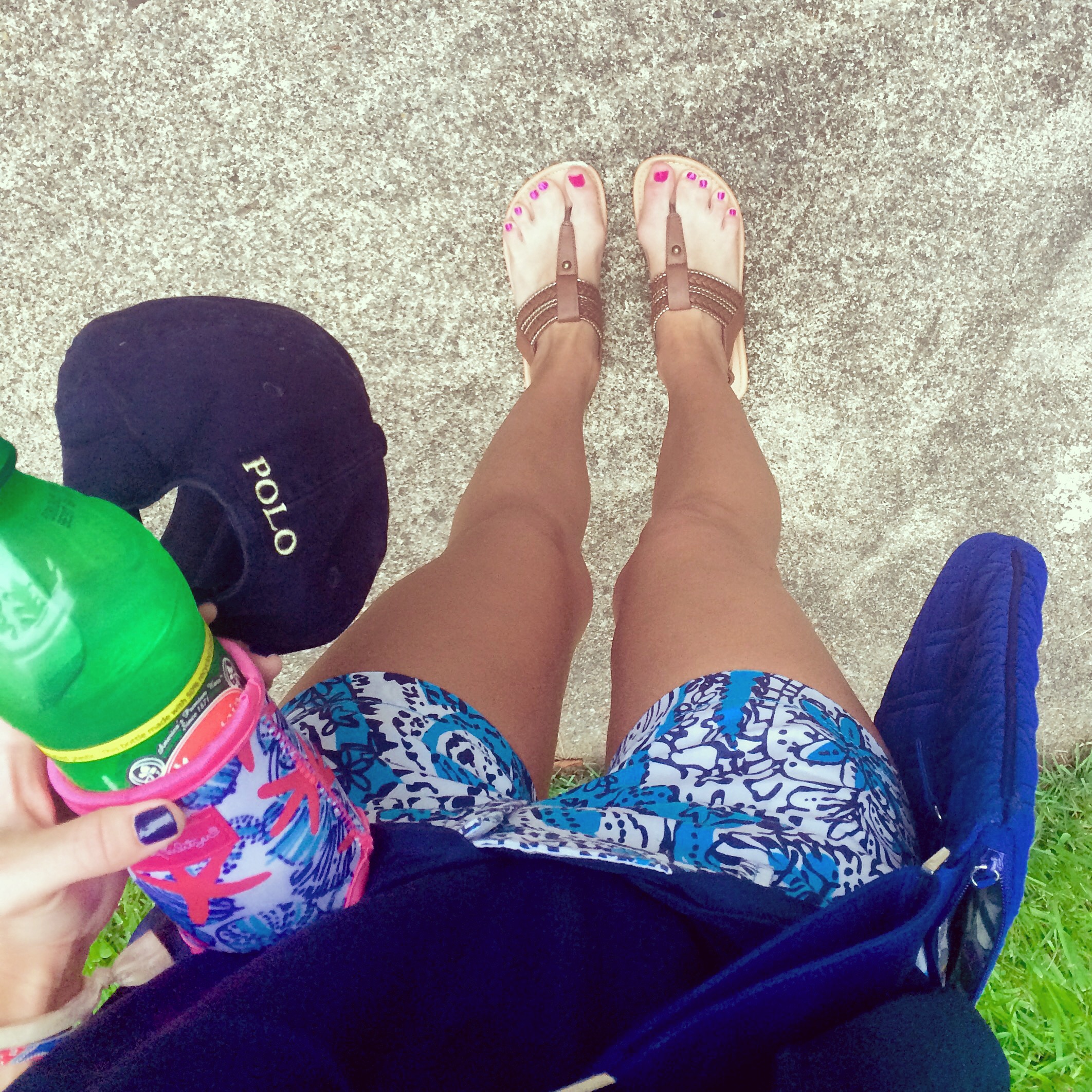 First thing’s first: the outfit. I wore my new Lilly Pulitzer Walsh short in Ariel Blue Hippy Hippy Shake and my new Lilly Dusk Racer Back silk tank top in navy, Polo by Ralph Lauren hat, Kendra Scott Hayden necklace, and carried a Vera Bradley cross body.