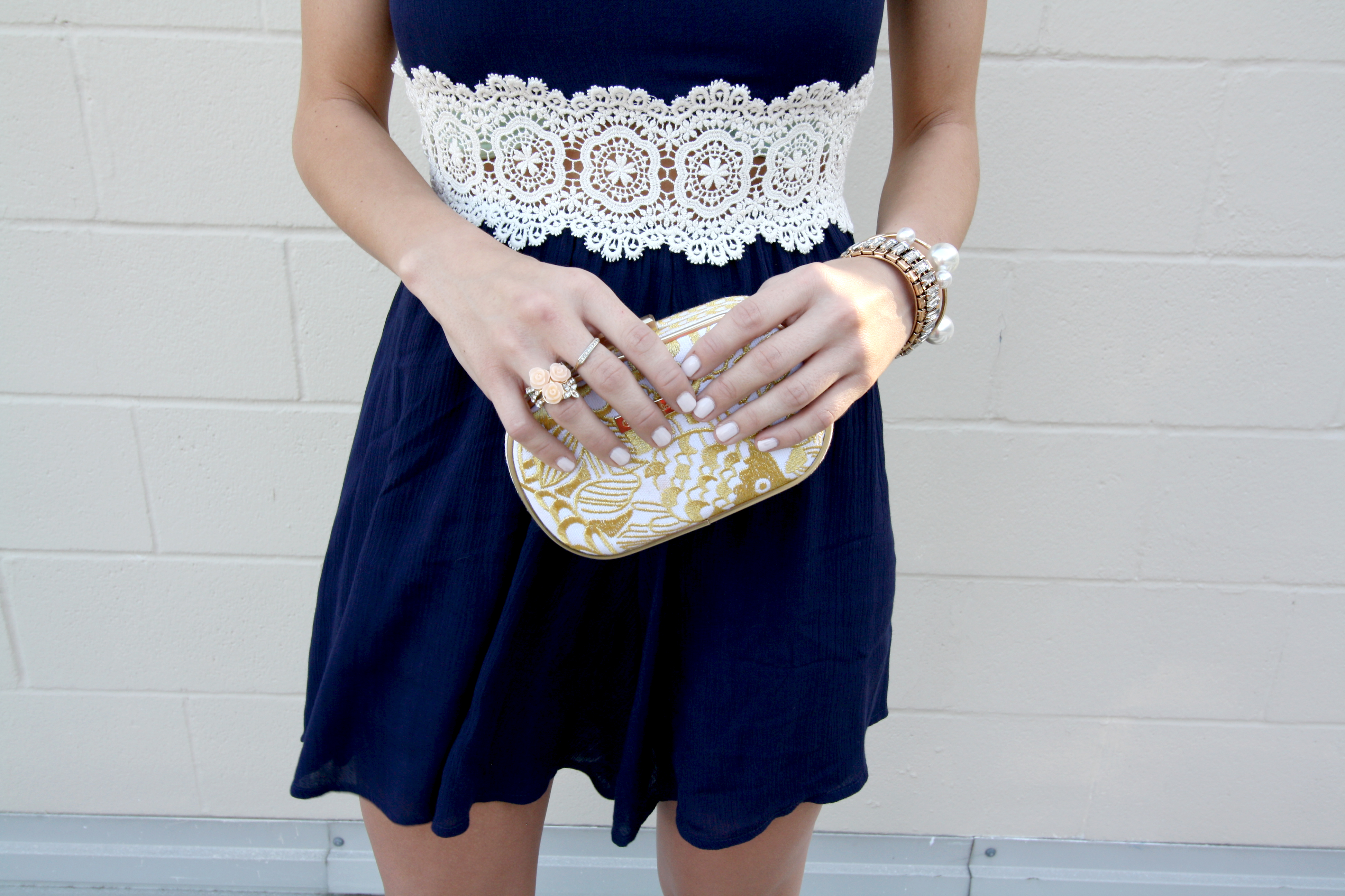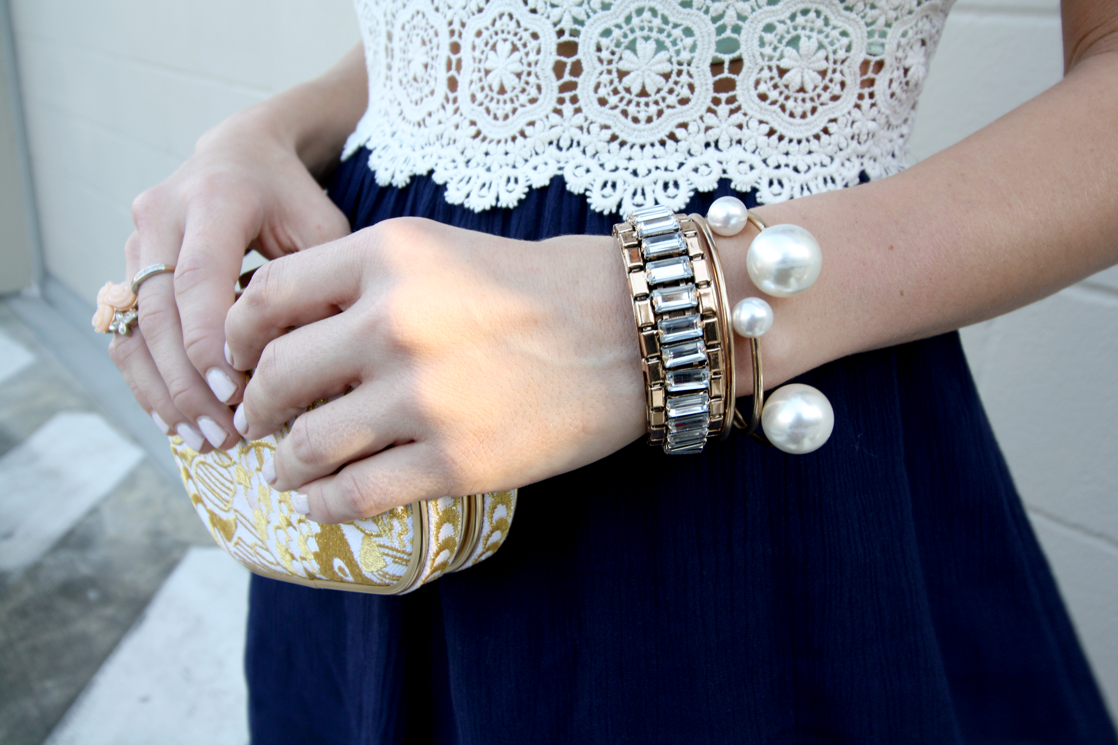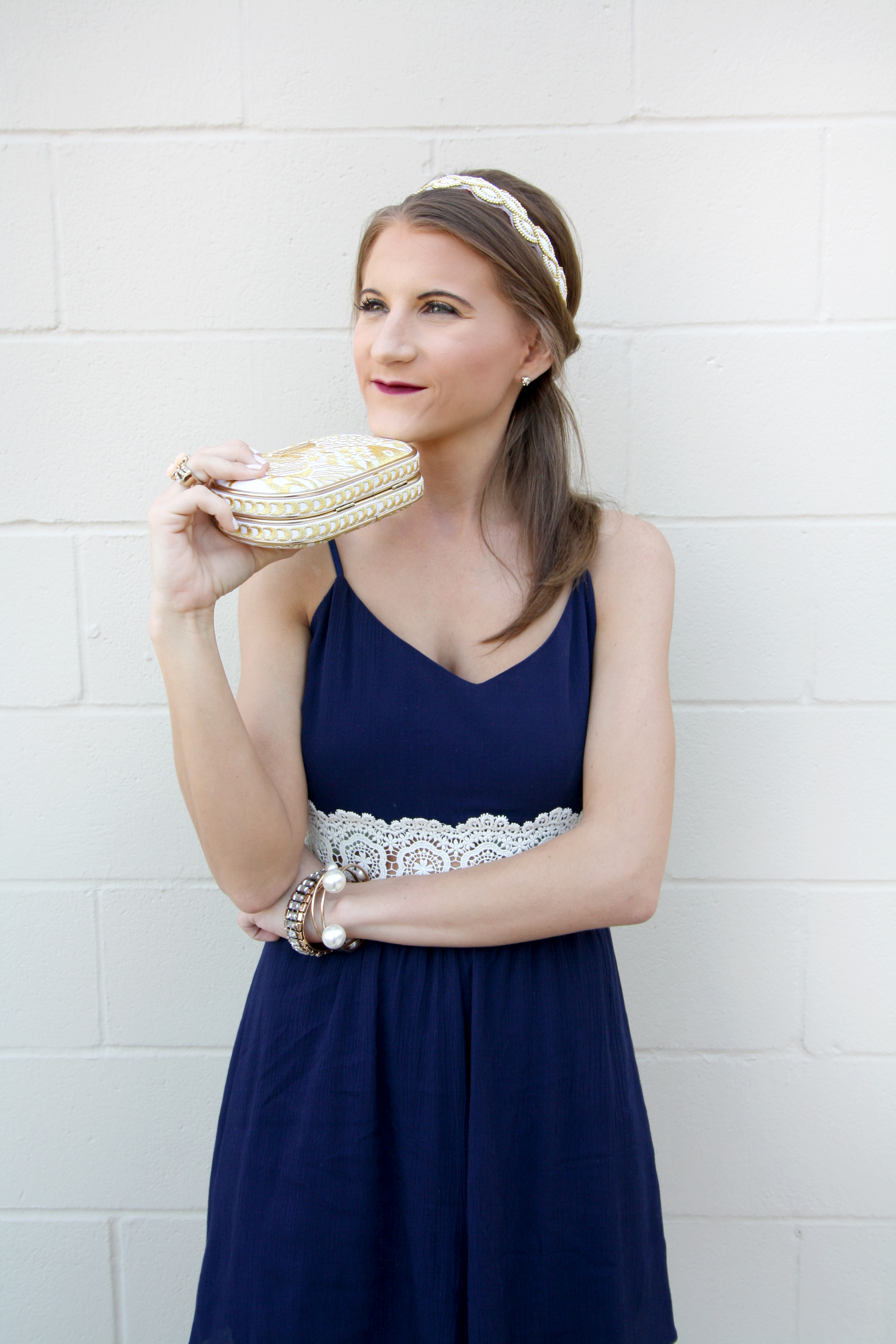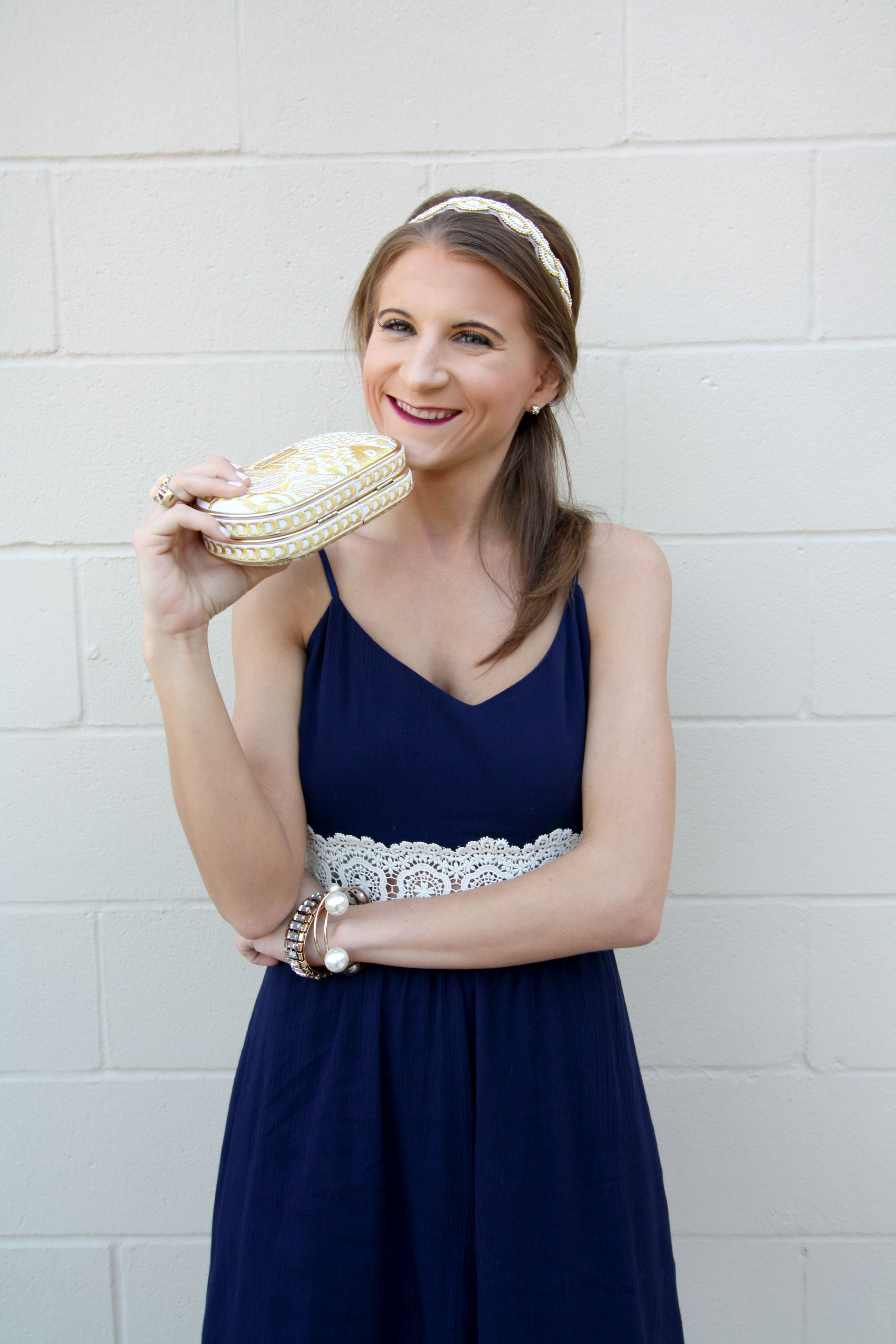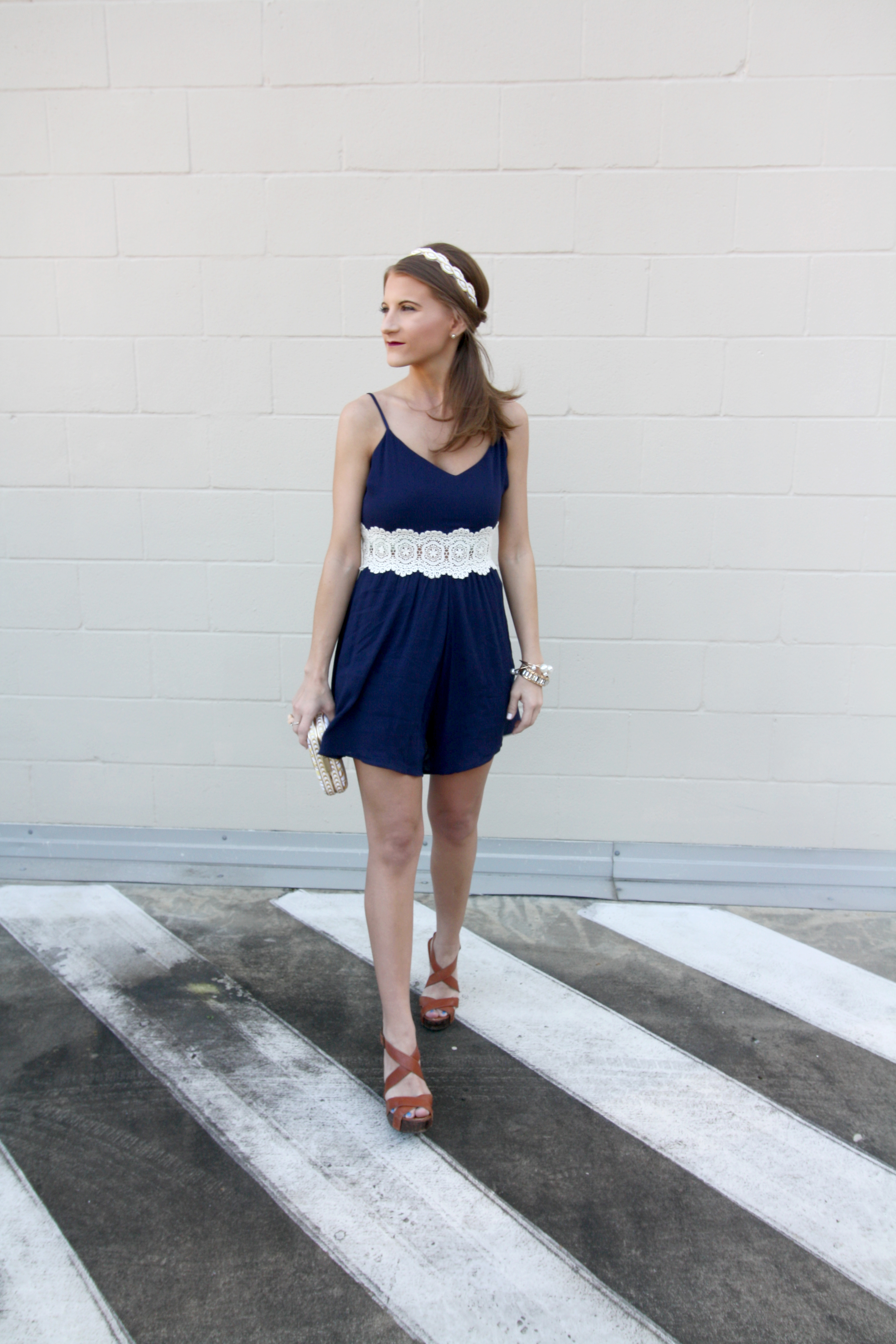 Altar’d State romper | Lauren Ralph Lauren wedges (similar) | Lilly for Target headband (similar) | Lilly for Target clutch (similar) | Target bangles (similar) | Riffraff bracelet