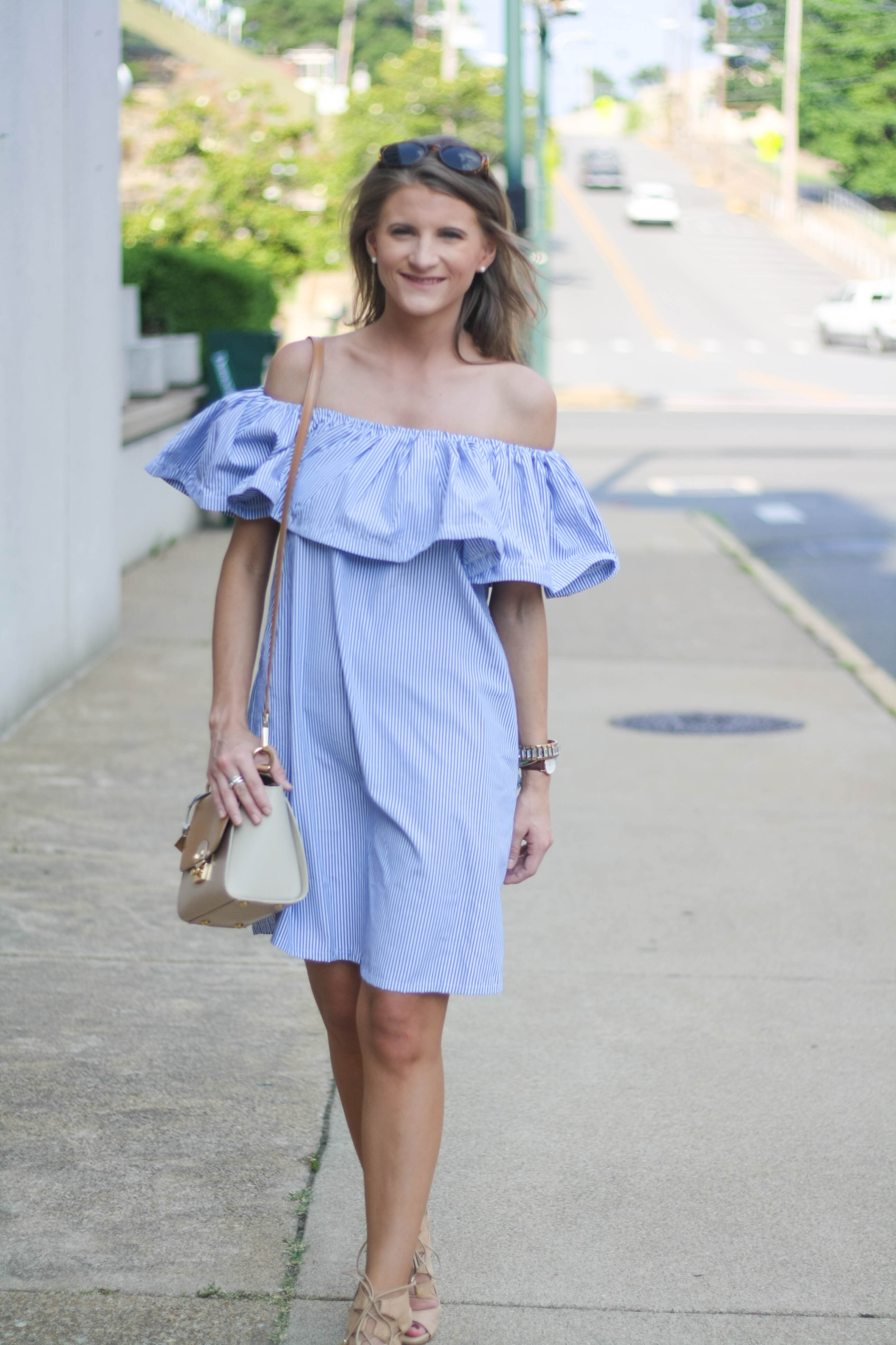 Dress: local boutique Pink Avenue (Order from their Instagram) | Shoes: Gianni Bini | Bag: Georgia Milani (similar) | Watch: Daniel Wellington | Sunglasses: J.Crew Factory