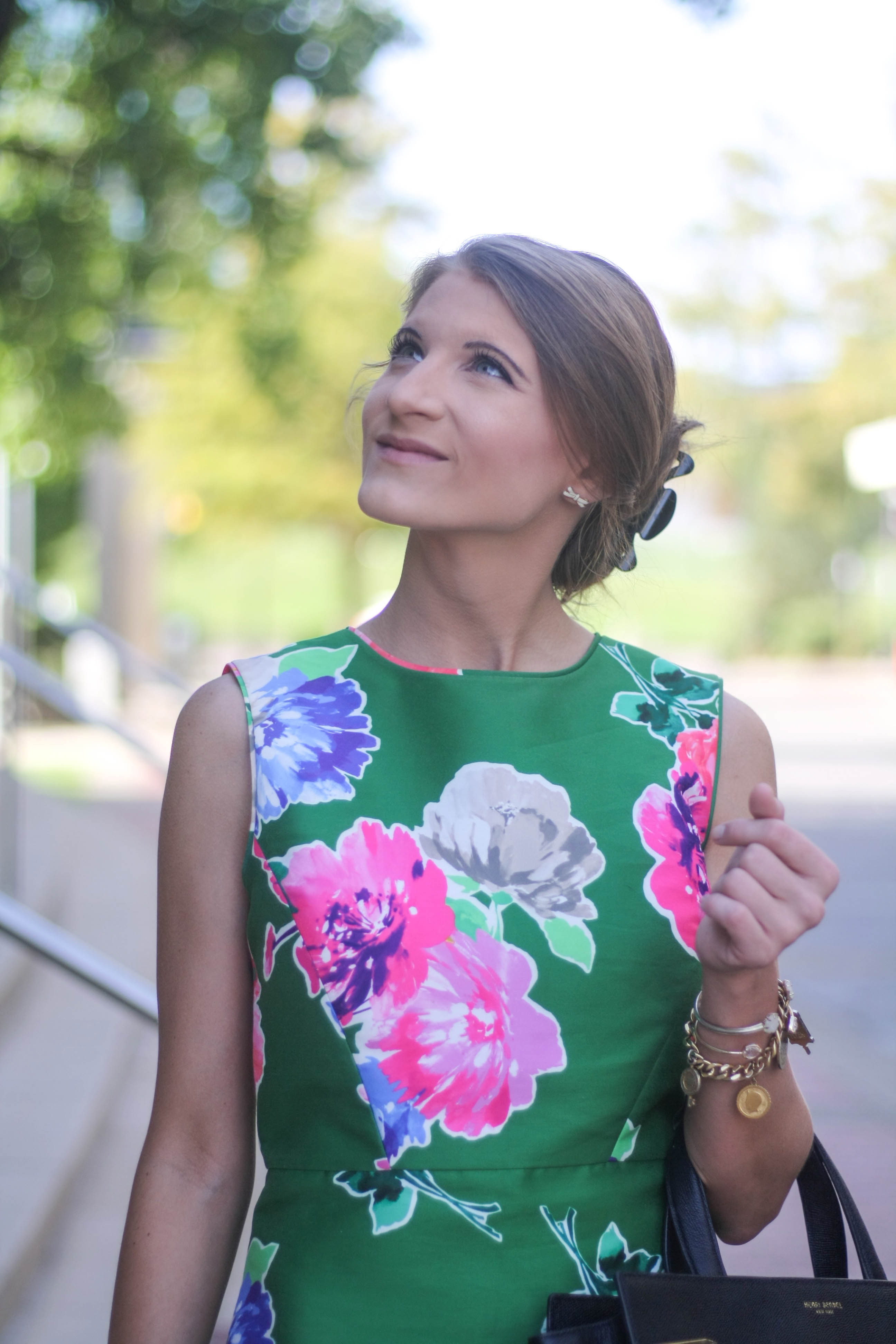 Dress: Kate Spade (similar style) | Shoes: I. Miller (similar) | Bag: Henri Bendel | Earrings: Kate Spade | Bracelets: Kendra Scott & Charming Charlie