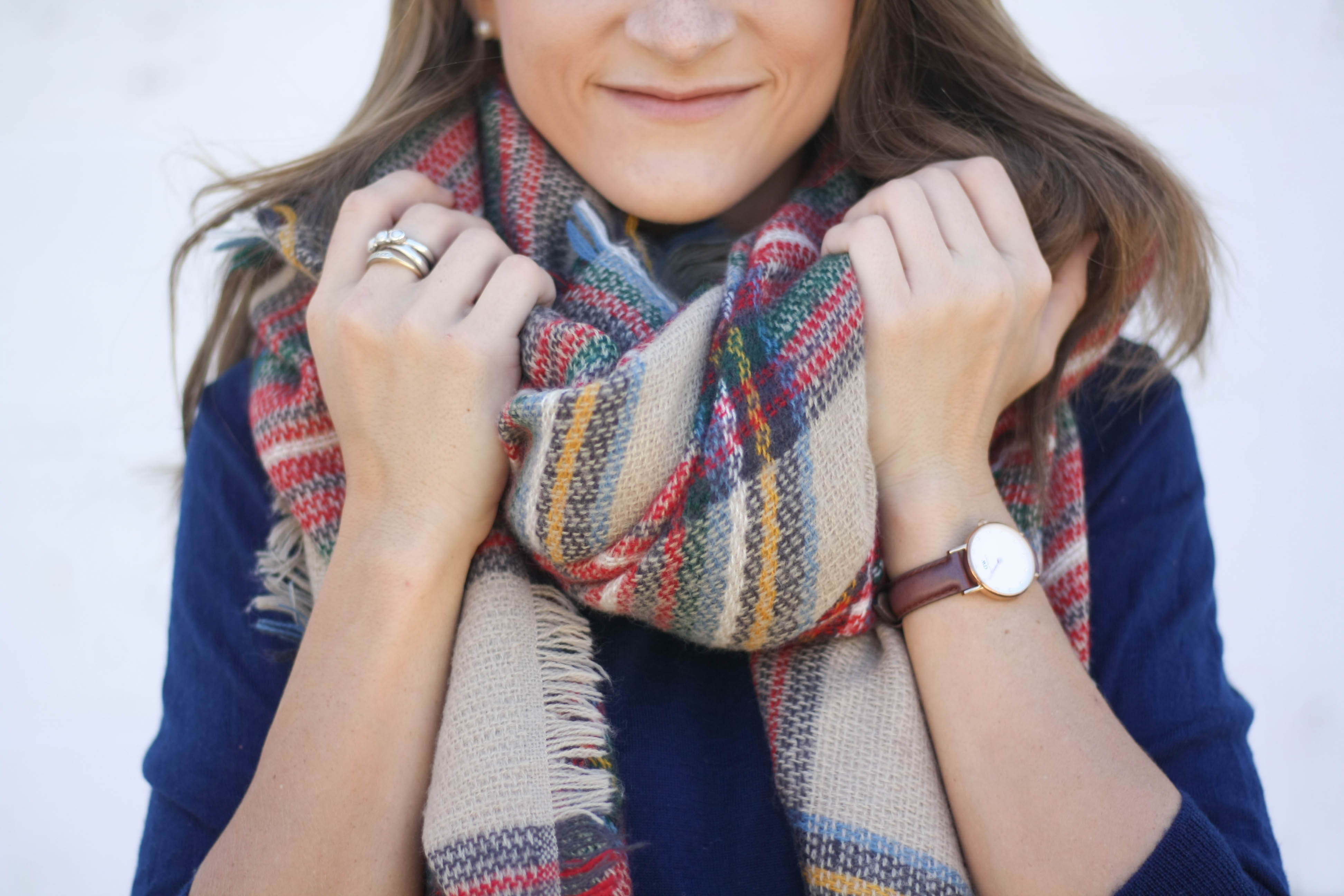 The blanket scarf, by far the most coveted scarf of the season. I picked up this particular scarf at a local boutique after seeing it on every It girl’s Instagram. Wear it around your neck, drape it around your shoulder as a wrap, or use it as a blanket at a football game. The possibilities are endless with this scarf!