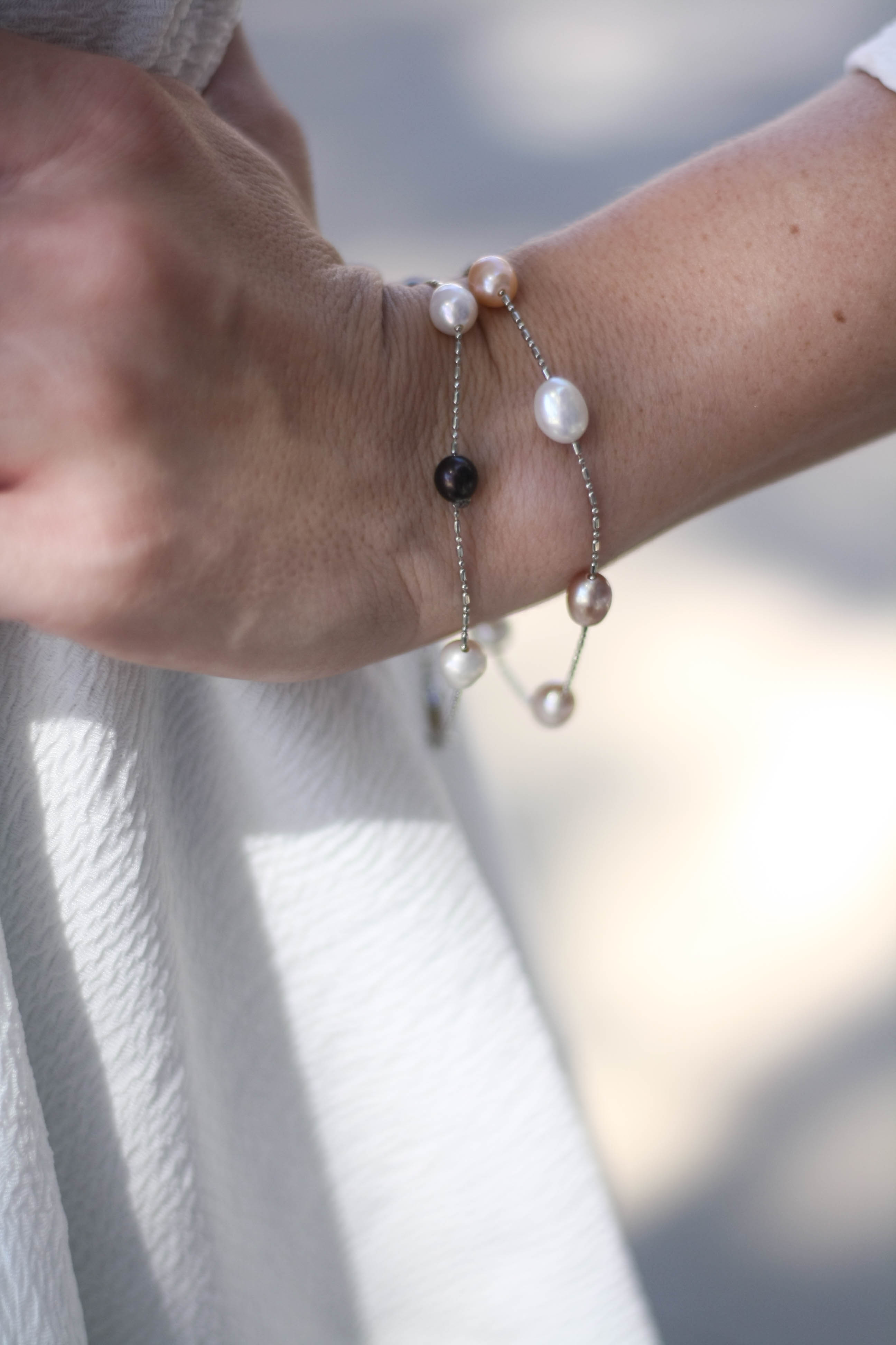I restricted my accessories for this outfit strictly to pearls. A chunky pearl necklace gave the neckline a heavy, textured anchor so I balanced the weight with simple pearl bracelets and studs.