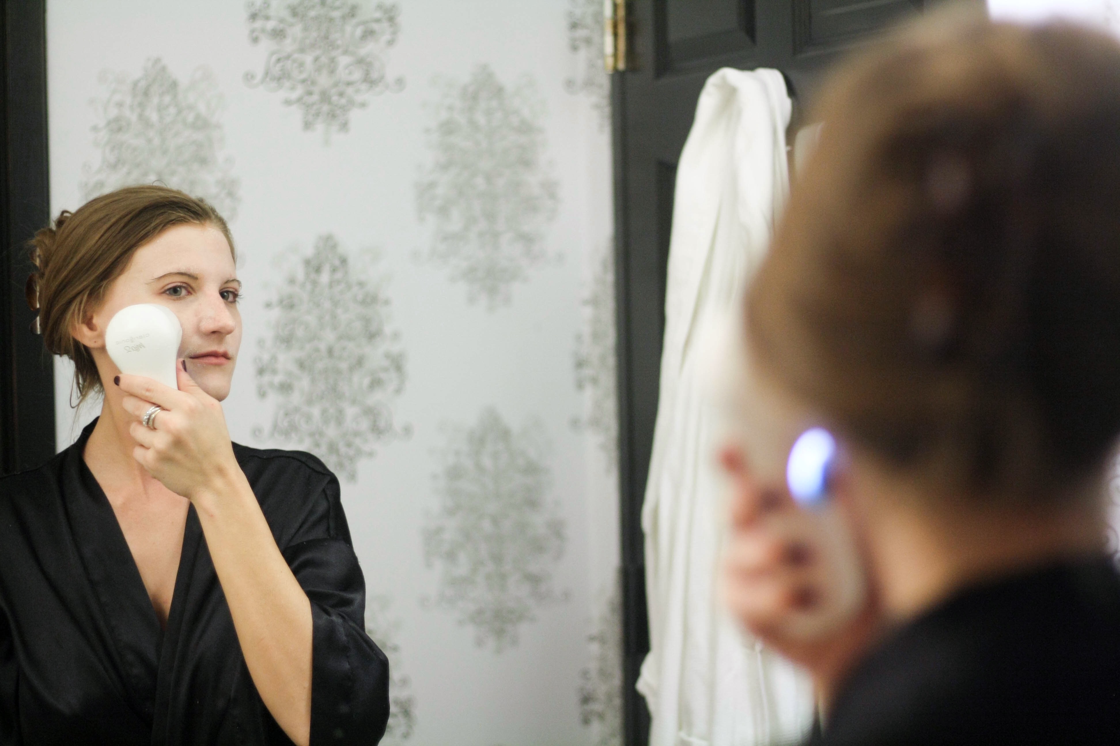 My favorite part about using the system is that the Mia 2‘s brush pulsates as you use it, vibrating the dirt out of your pores.