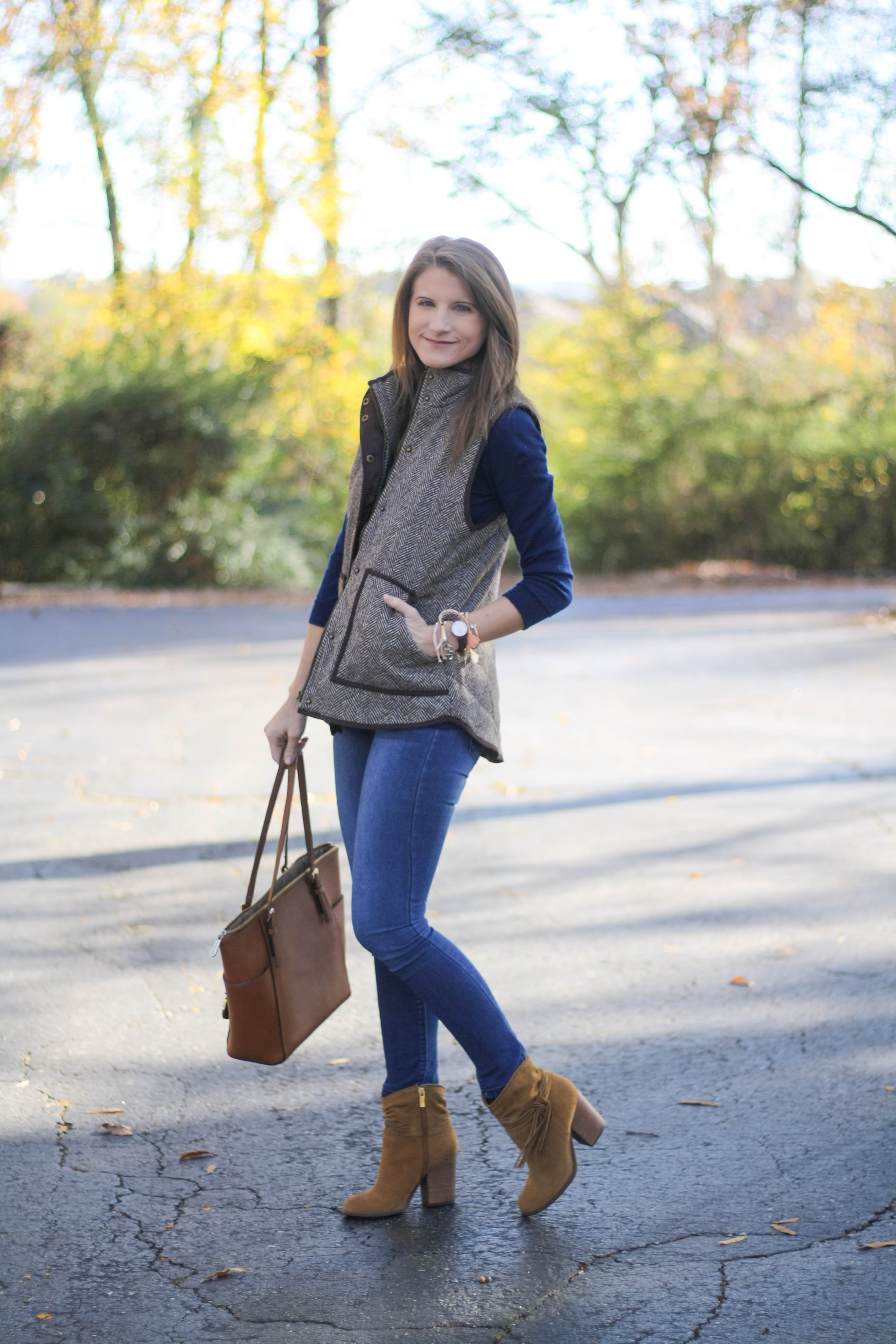 I loove this vest paired with those Jessica Simpson booties! Perfect. Love this look girl.