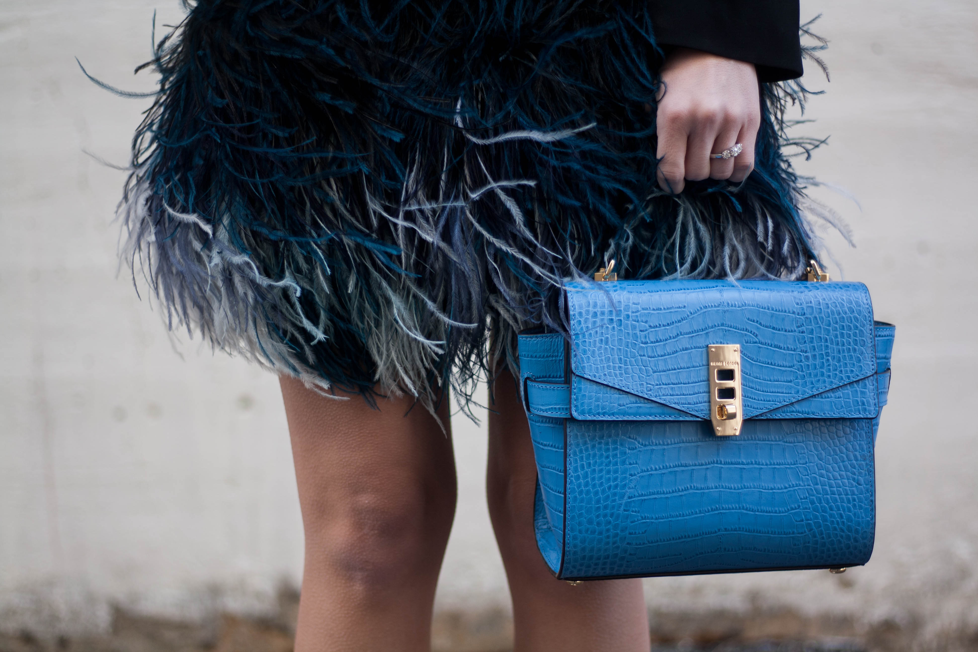 Feathers are a girl’s best friend. Unless you’re climbing in and out of Ubers. Nevertheless, I knew this feather-trimmed dress by Elizabeth and James was going to be my dream NYFW dress.