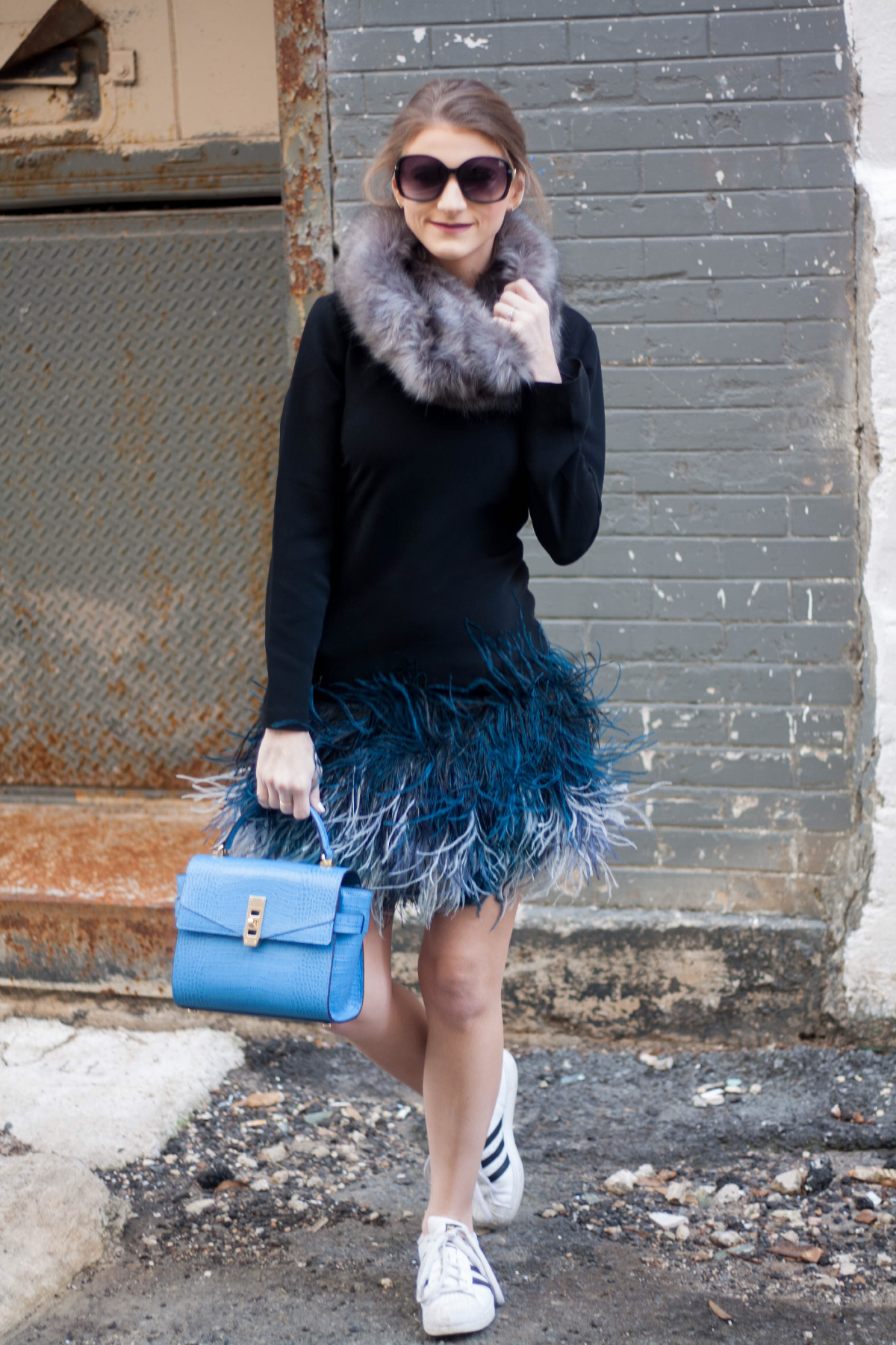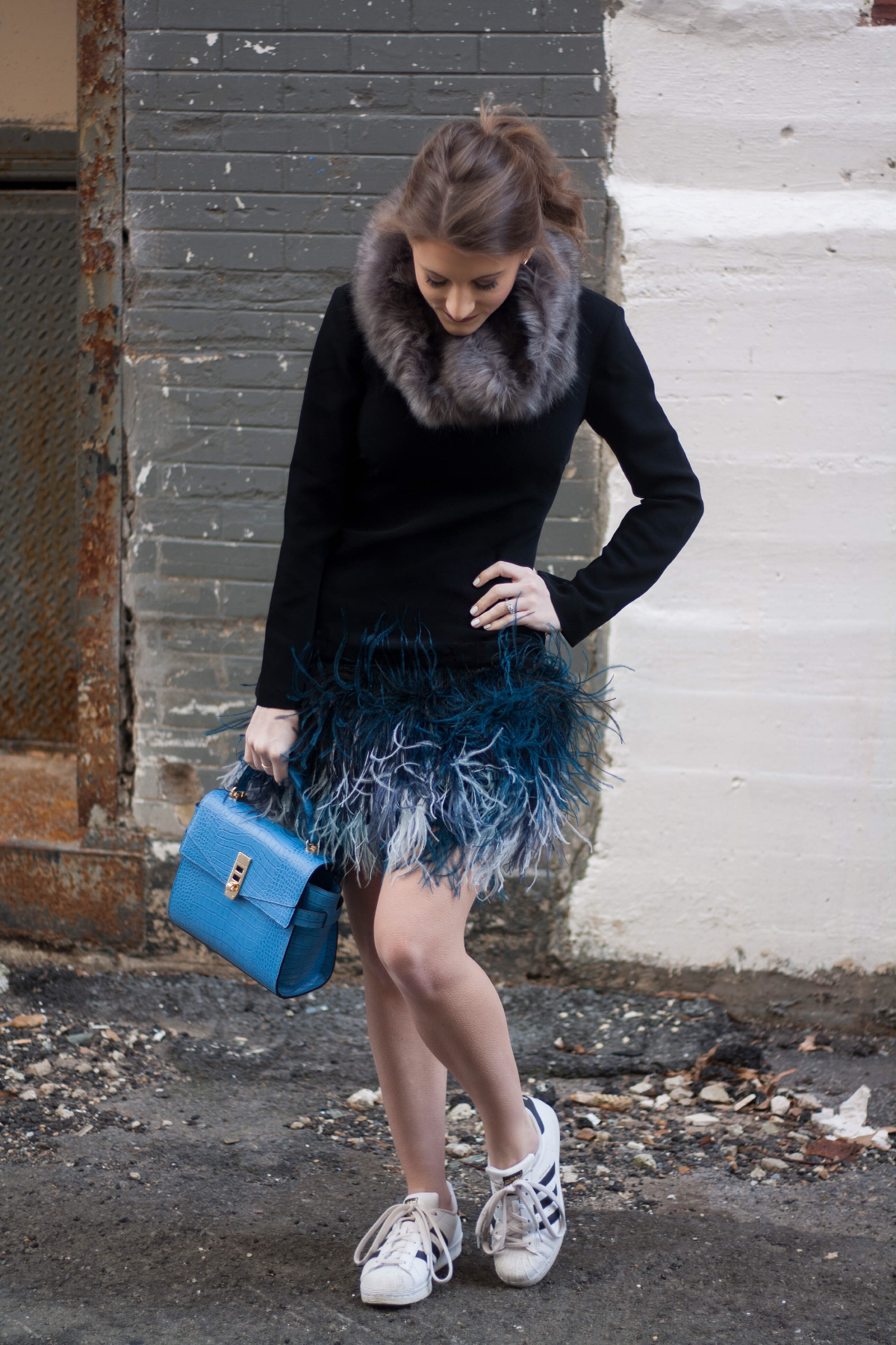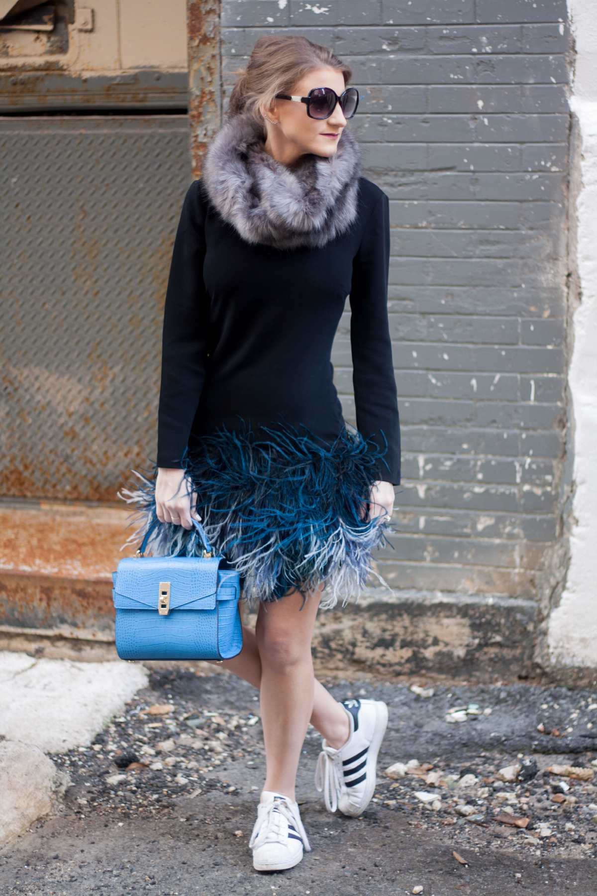 Dress: Elizabeth and James (similar here & here) | Shoes: Adidas | Bag: Henri Bendel | Earrings: Rebecca Minkoff (similar)