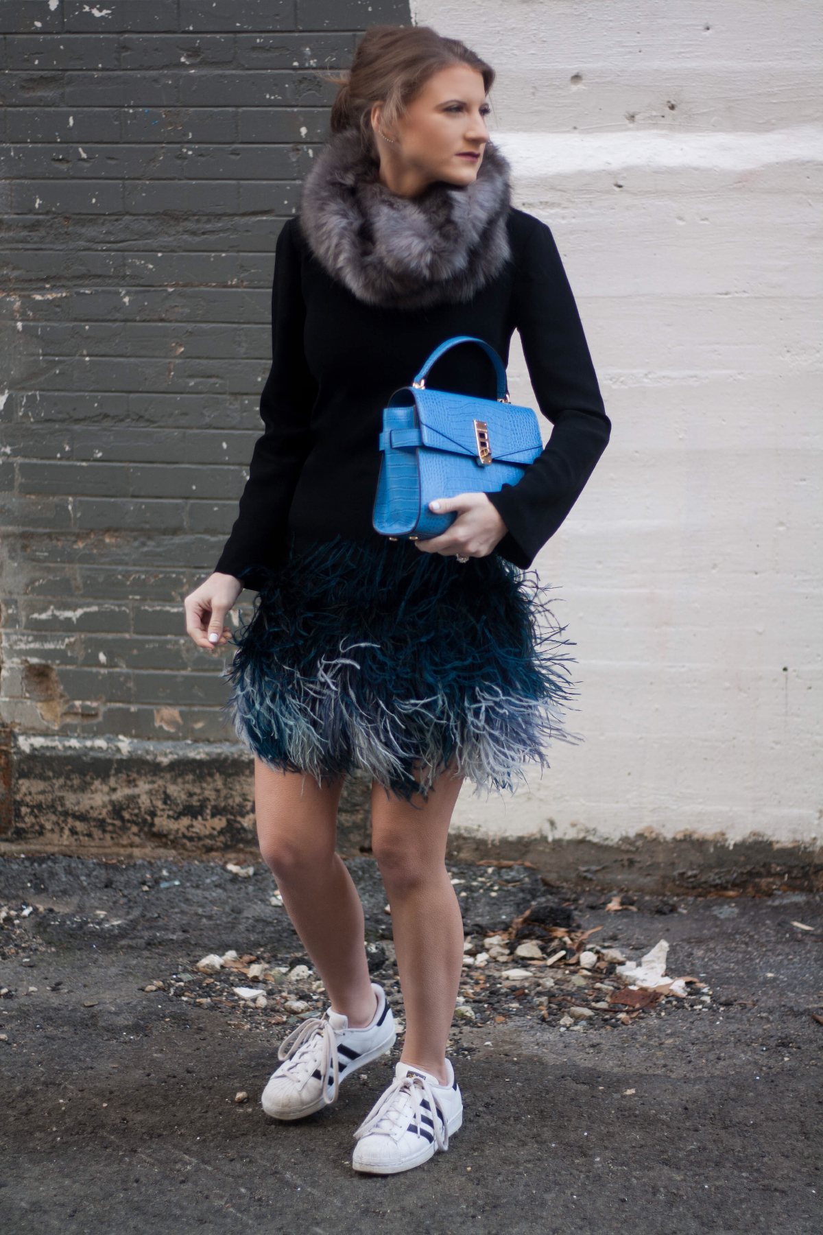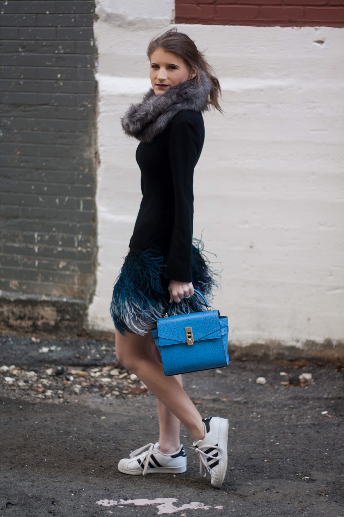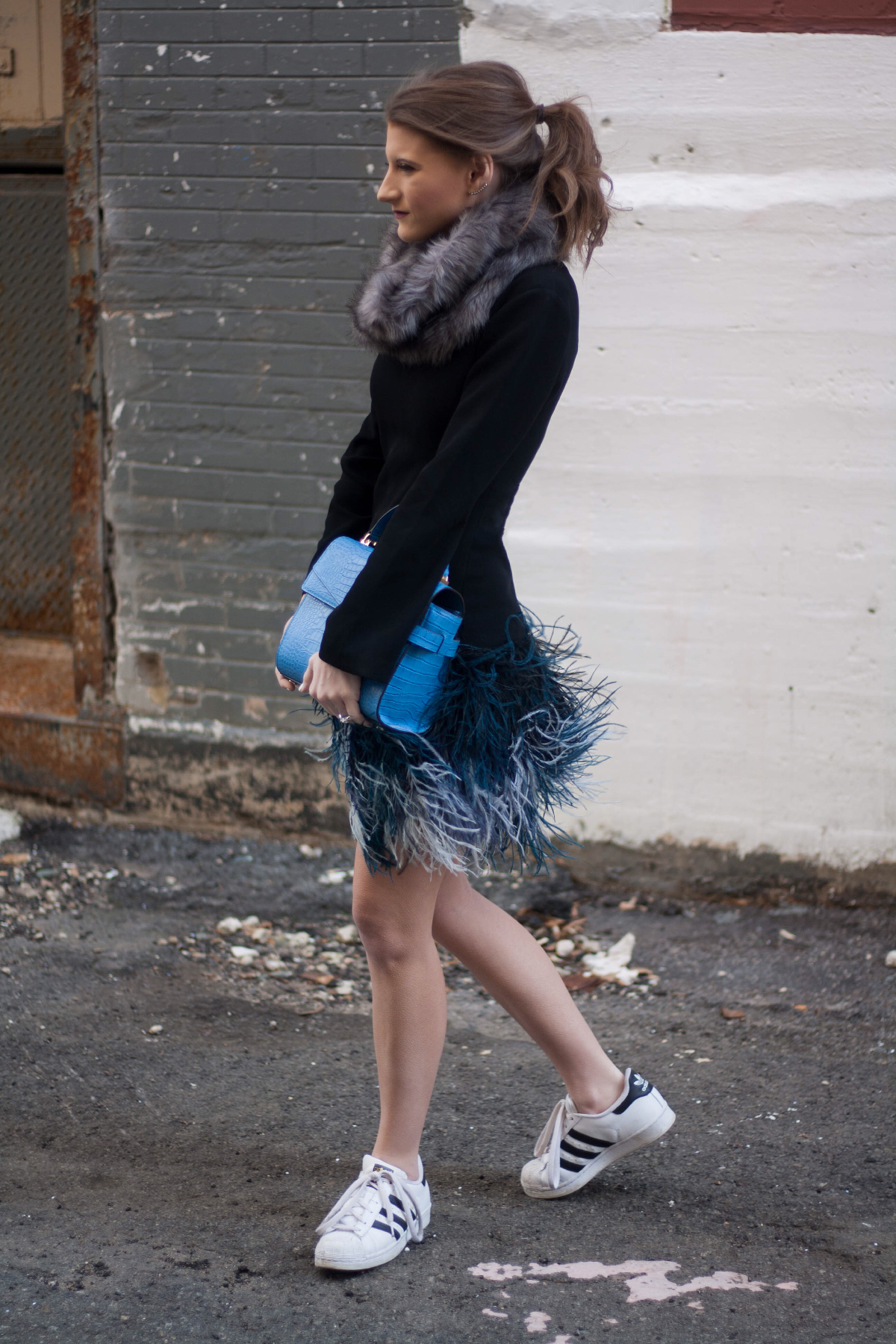 Dress: Elizabeth and James (similar here & here) | Shoes: Adidas | Bag: Henri Bendel | Earrings: Rebecca Minkoff (similar)
