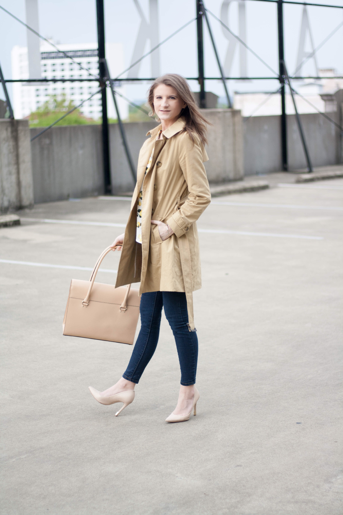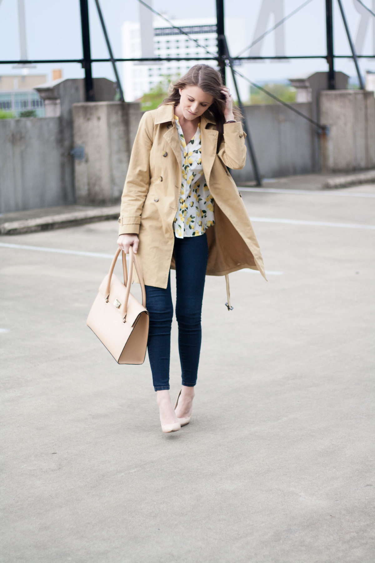 Nothing says spring like a bright, lemon print blouse! The bright yellow print emulates the warm sun and the budding flowers, making it impossible to be down when you’re wearing it. Layer with a trench in case of April’s showers, and you’re good to go. See all of the outfit details below!