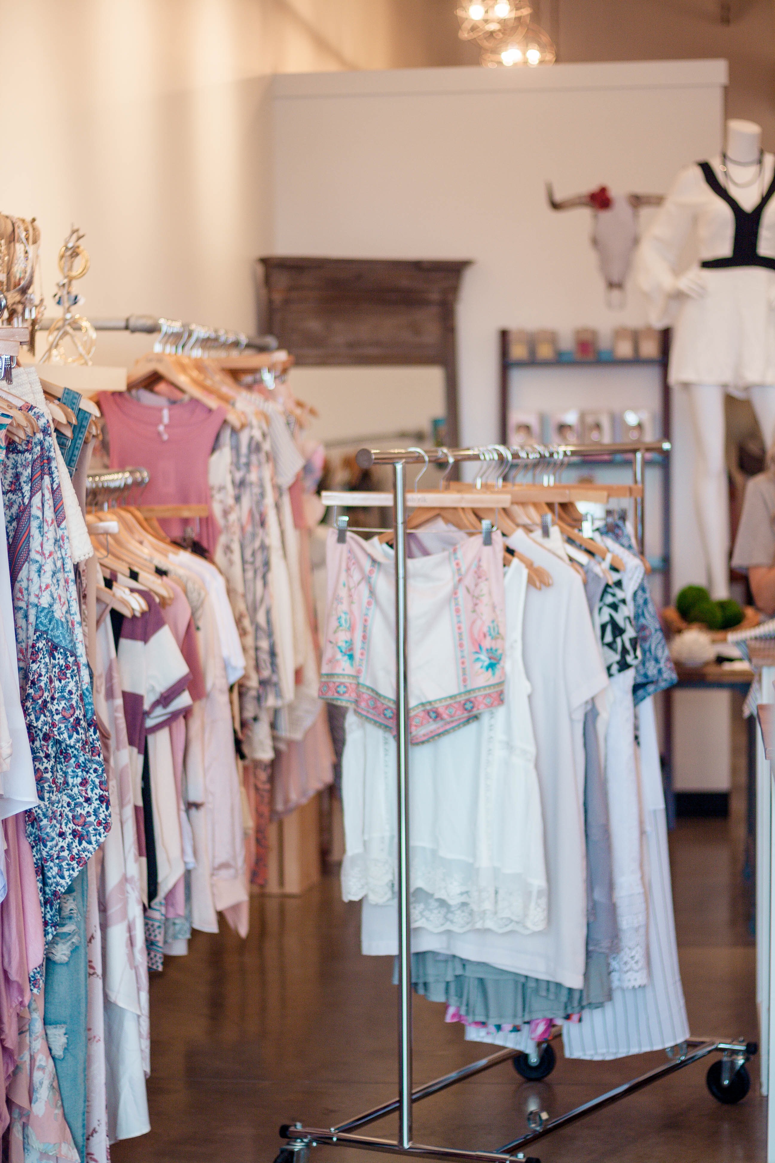 The store features a wide variety of fun, on-trend clothing, shoes, and accessories that are absolutely perfect for summer vacation! Flowing tank tops, printed shorts, and statement maxi dresses line the racks on both sides of the store with an amazing sale rack in the back. My favorite feature of the store has to be the show wall, though. Seriously goals!