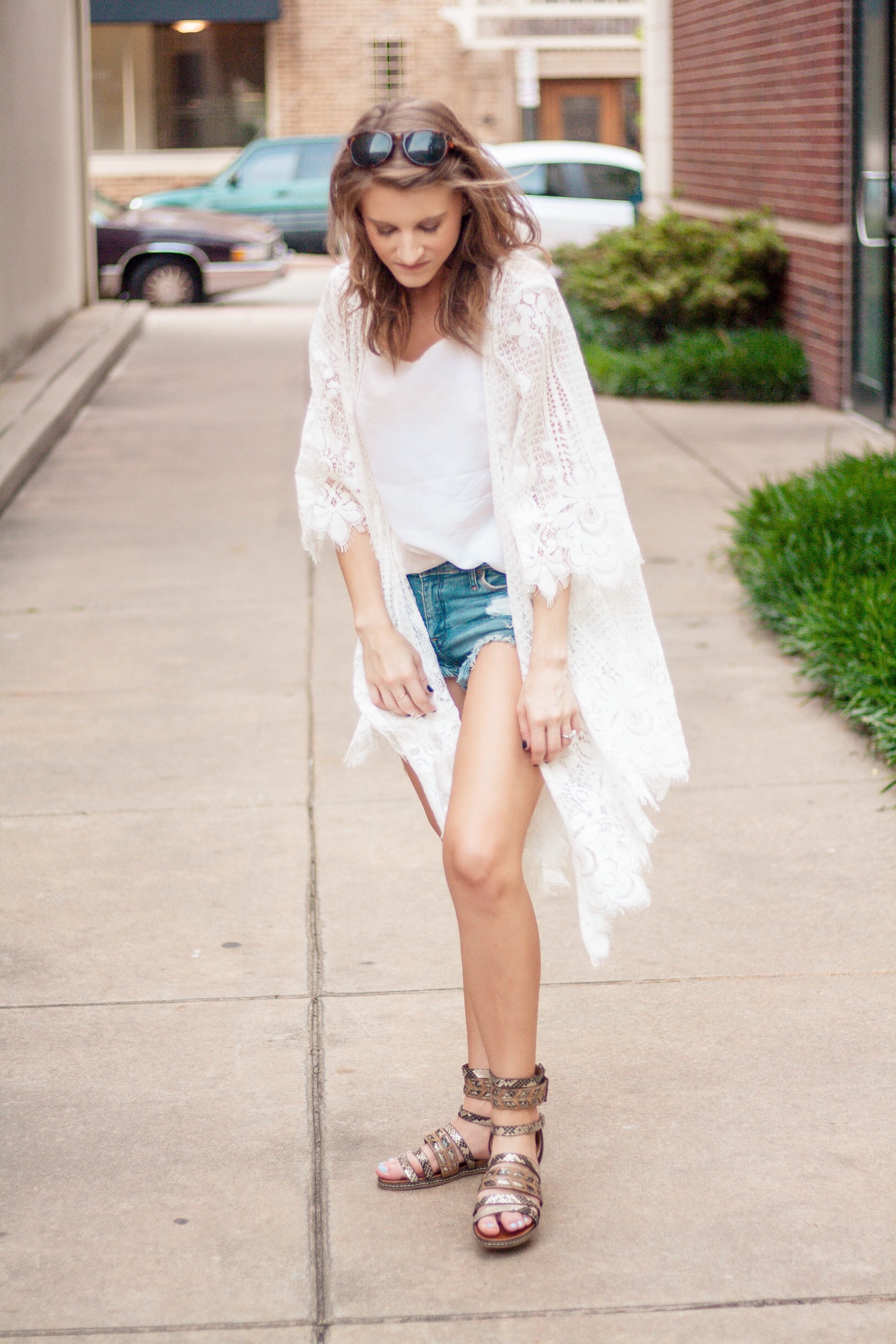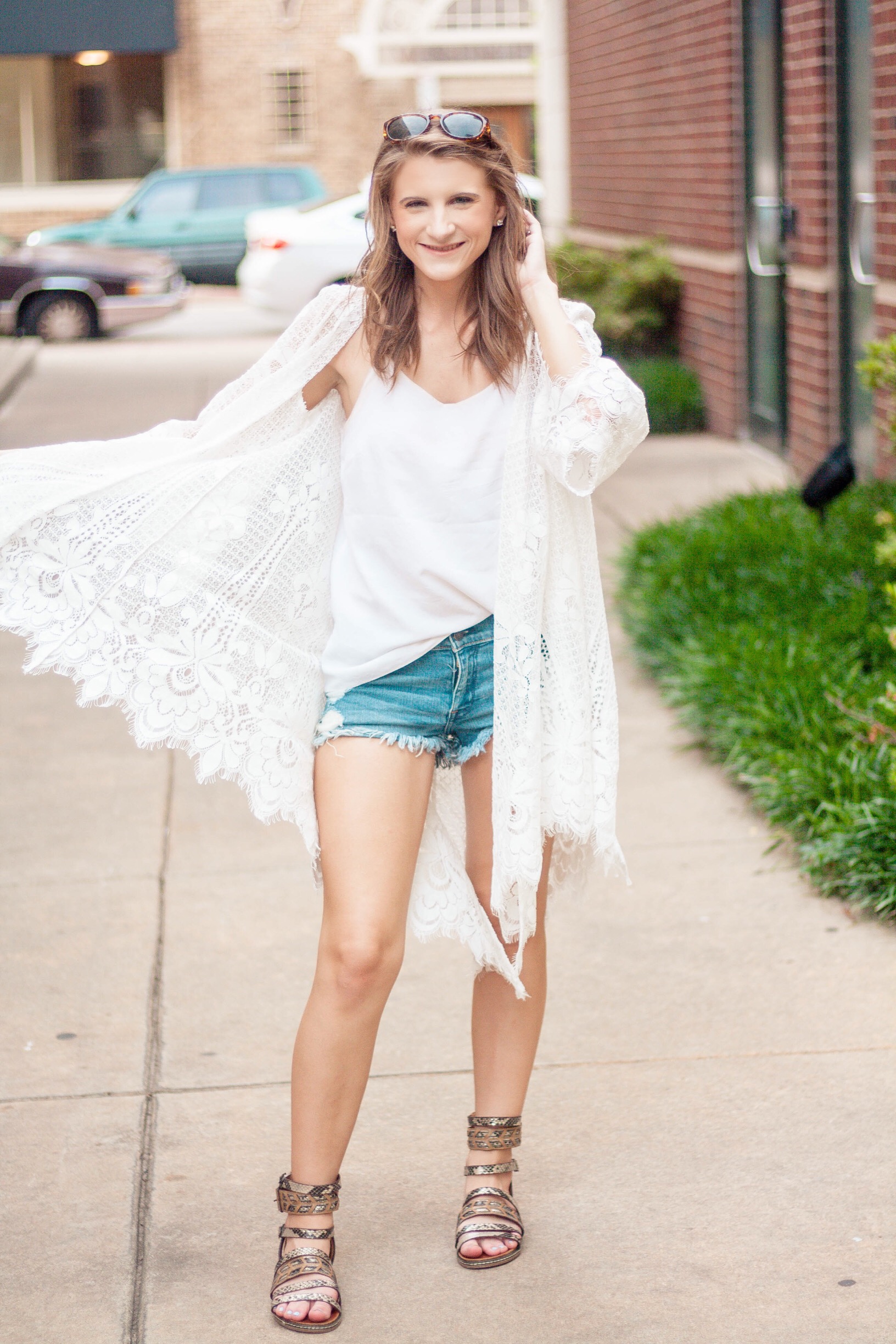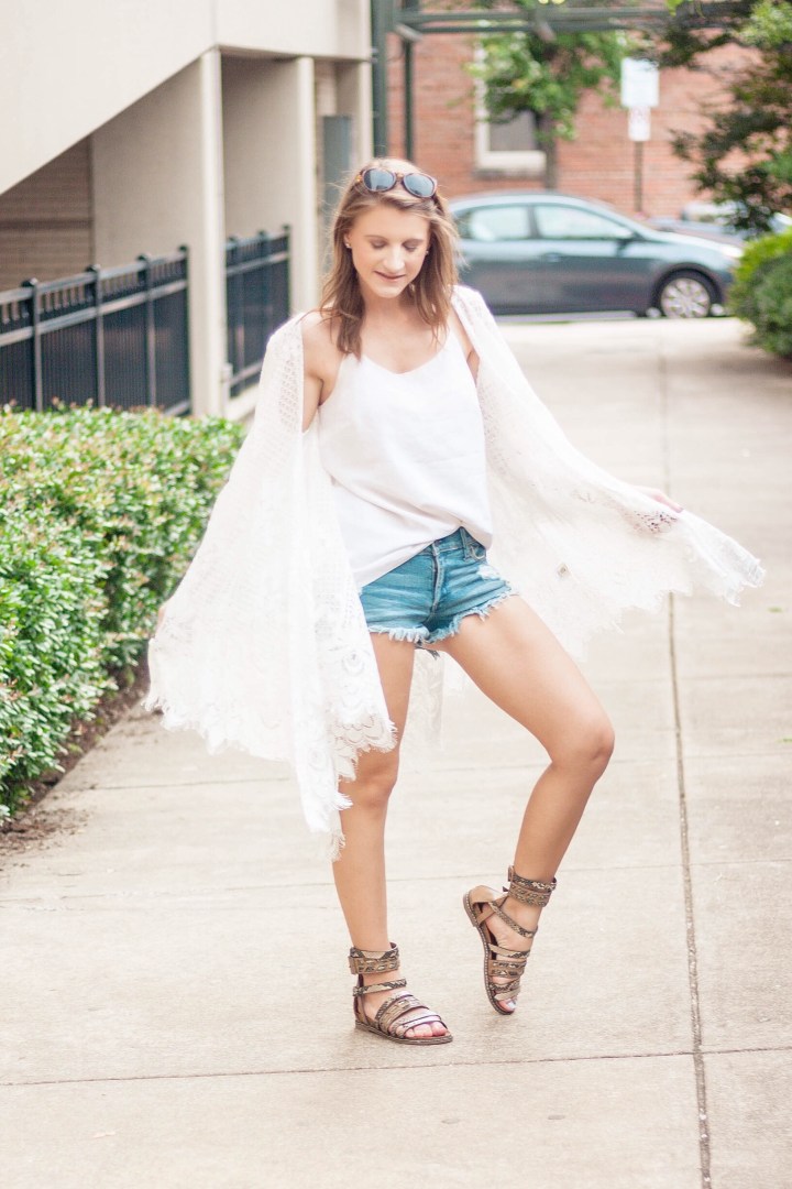 The Lilly Pulitzer camisole is simple and layers well with cardigans and jackets, an essential for me since I’m always cold. Simple, distressed jean shorts are always a summer go-to for me, as well. They go with literally everything!