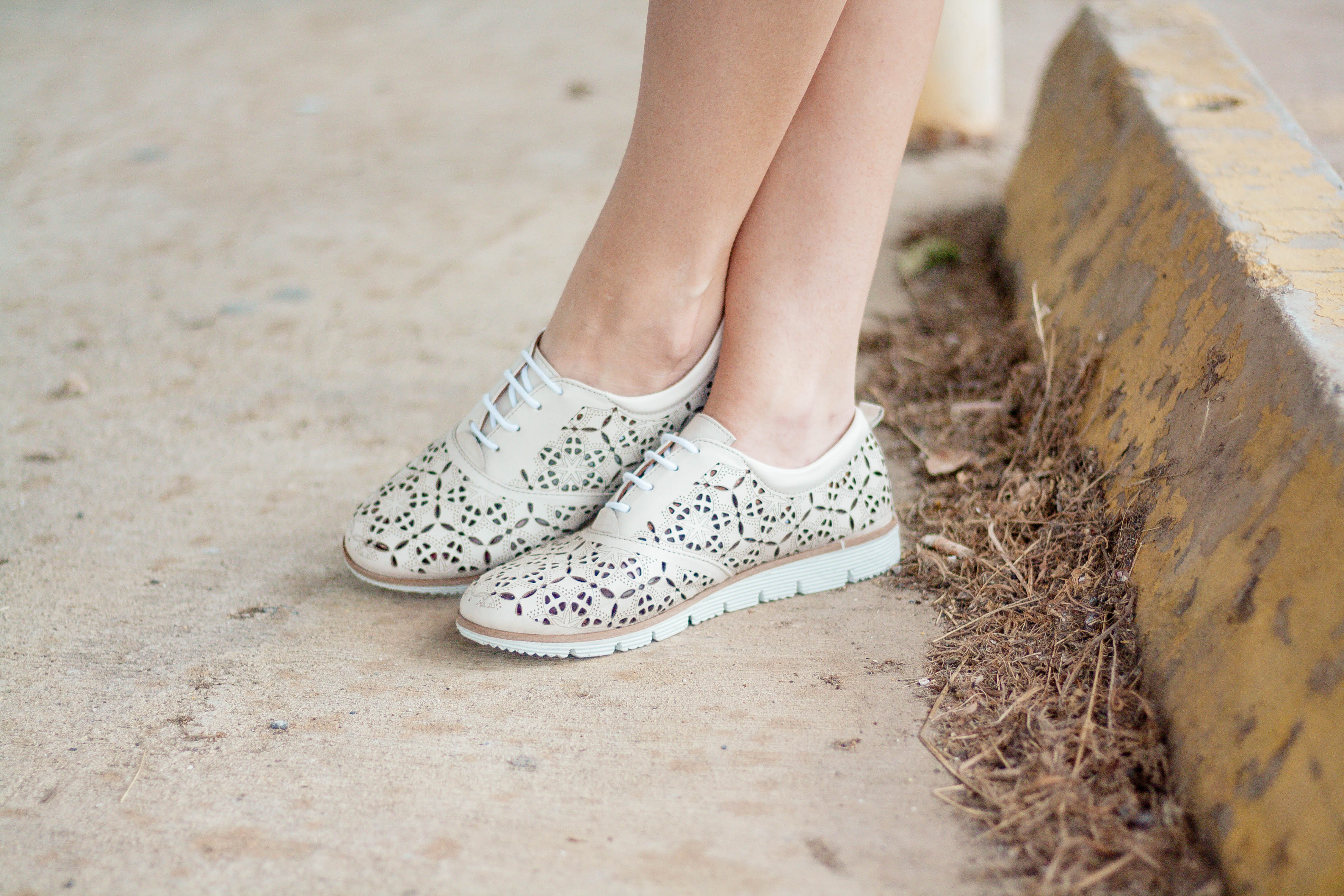 Let’s first talk about these adorable shoes from European Famous Brands. They possess a distinct versatility that is difficult to find in shoes. On one hand, the delicate design cut into the beige leather makes the shoes a statement piece for any casual outfit. And on the other, the soft, neutral colors the shoes are available in (beige, brown, and white) give them advanced subtly. The cut design goes all the way through the leather, making them breathable so they’re easy to wear in warmer weather. I simply can’t get enough of how comfy they are to wear.