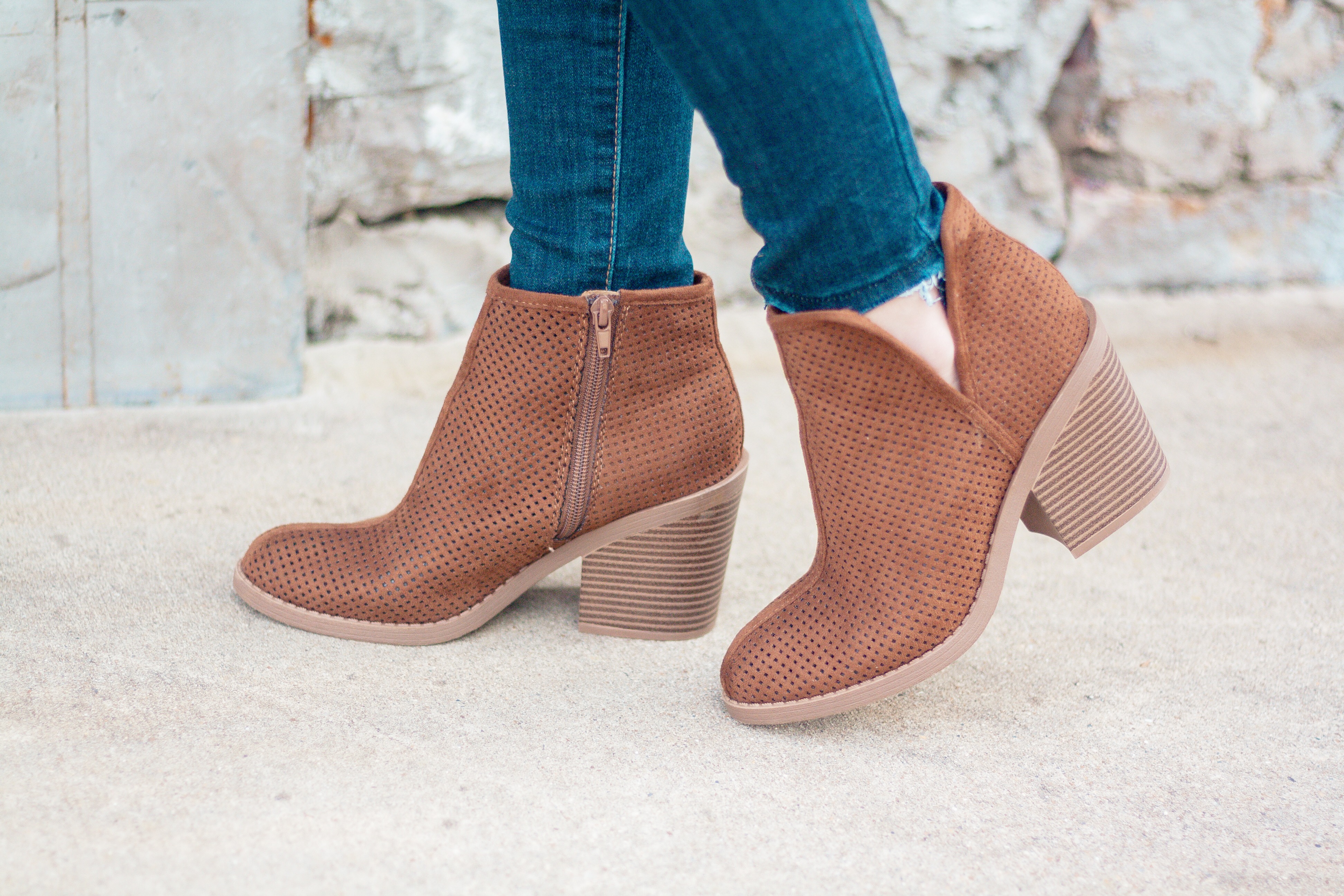 The lightly destroyed jeans are my new favorites from Nordstrom. I love the unfinished hem that helps lend a rugged edge to the outfit. The outfit is finished off with short neutral booties and a wooden watch by Jord.