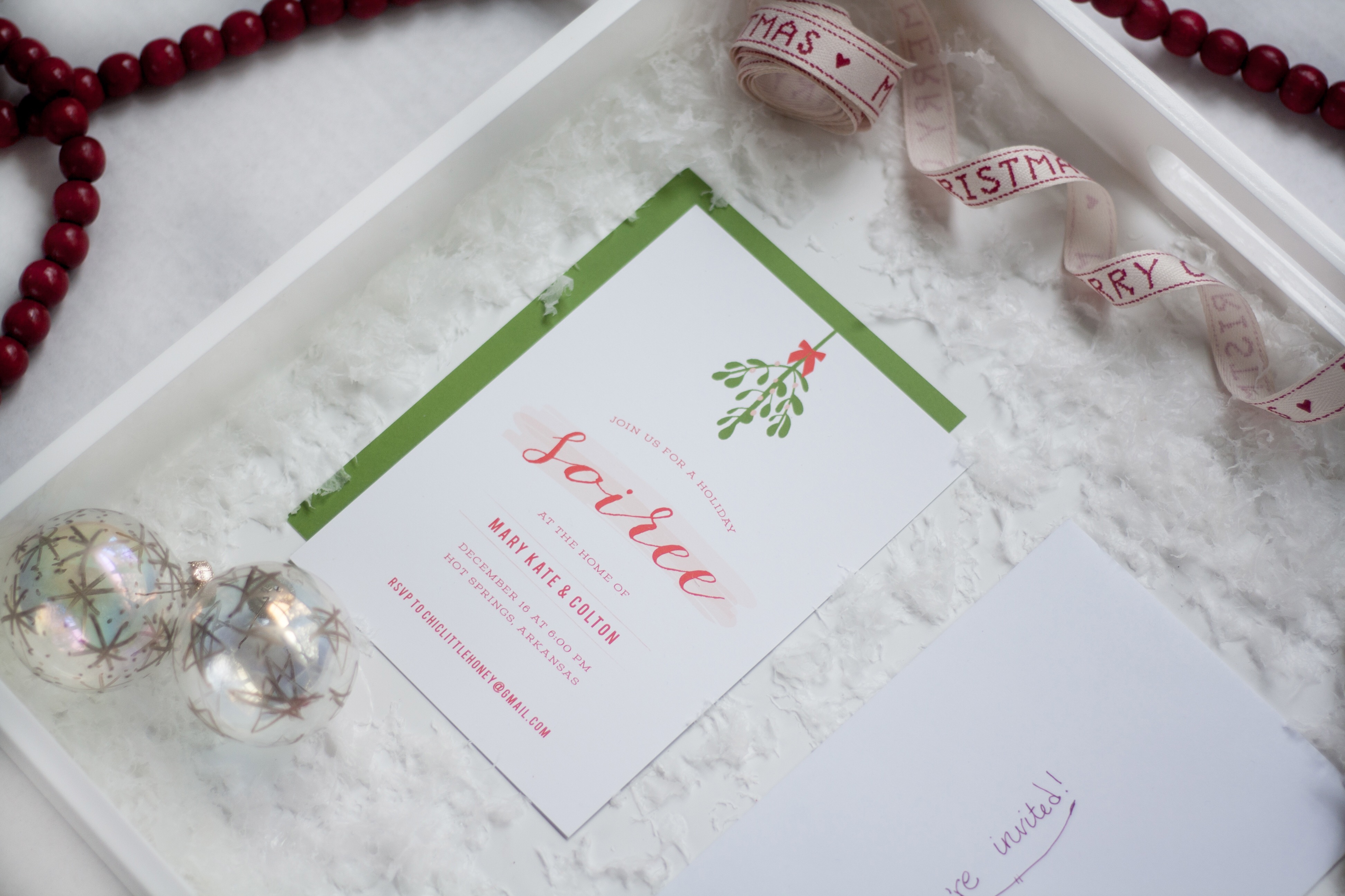 I looked through several pages of holiday party designs that ranged from simple to elegant to adorable, before I settled on the Gallery Holiday Party Invitation. I played around with the colors of the font and background (both front and back!) then requested a printed sample of cards to be sent directly to me for review before placing my full order. It was only a matter of days before the samples arrived in my mailbox!