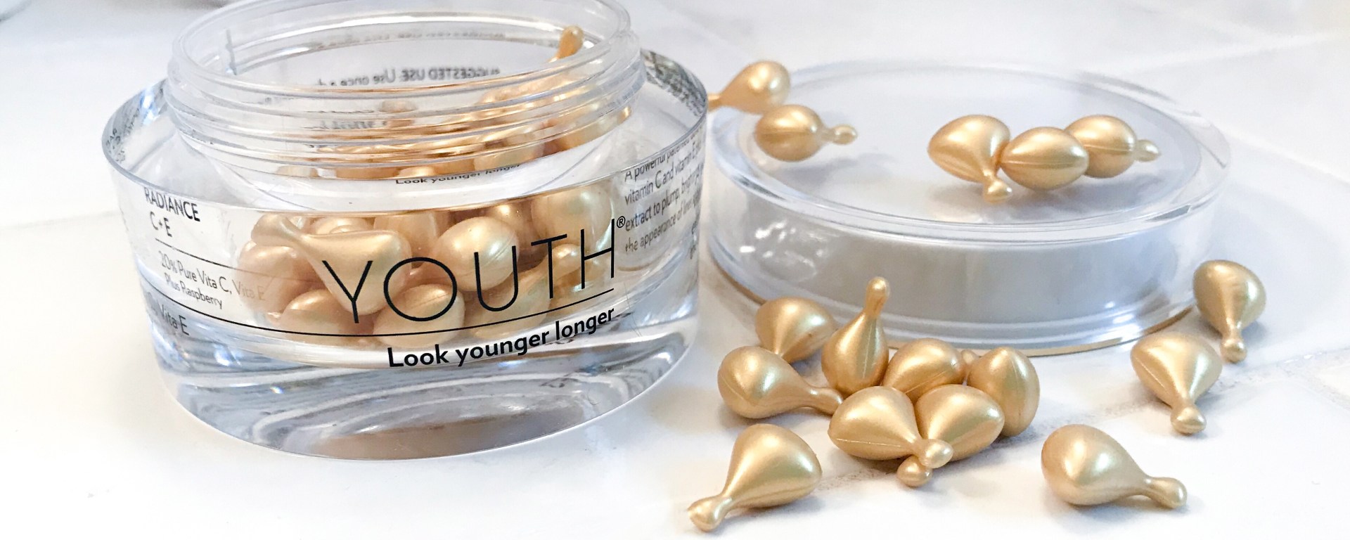 By far my favorite step in my touring is to apply the Youth Radiance C + E. The brightening formula is packaged in shining gold capsules that contain just the right amount for one night’s use. The cream brightens and tightens the skin to reduce fine lines and wrinkles. Even though I’m only 25, I’m starting to get fine lines directly under my eyes. (I blame the excessive amount of smiling I do on a daily basis for those!) So I focus the formula under my eyes to make the lines less noticeable.