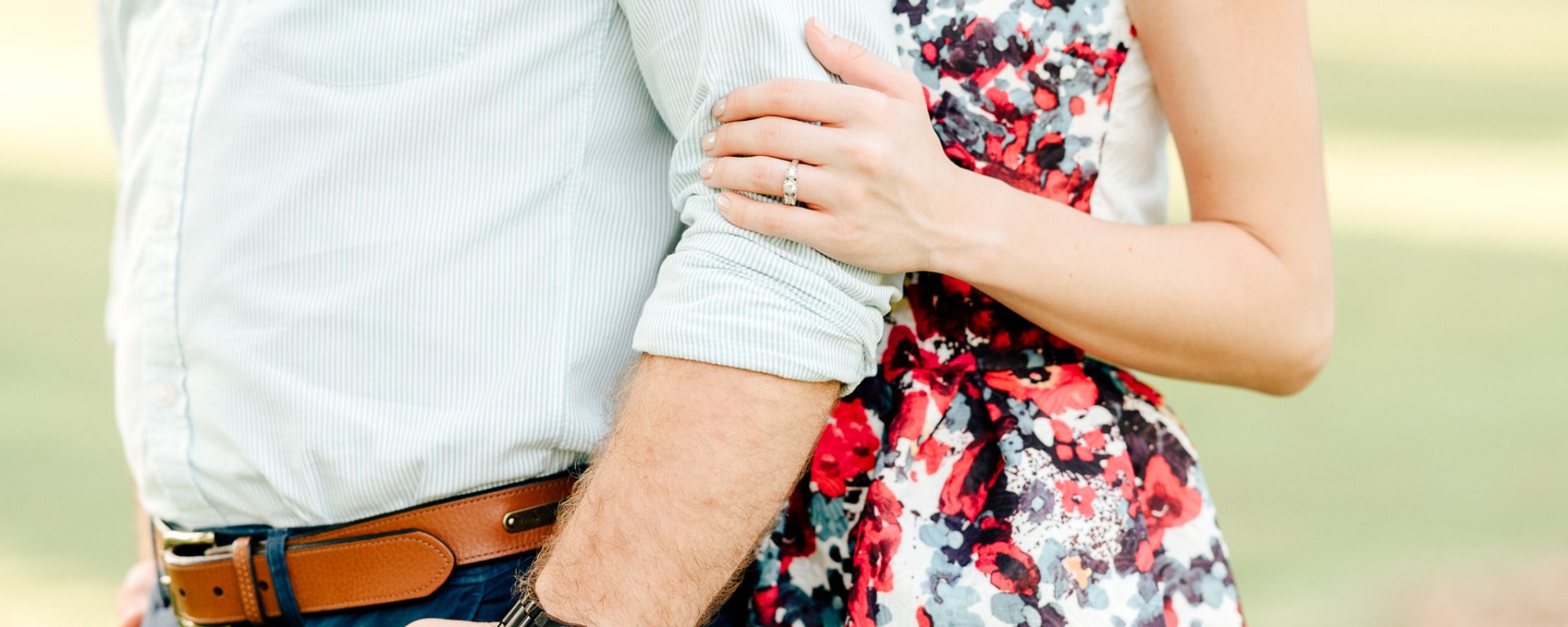 Our vision for the shoot included spring, playfulness, color, and brightness, which is shown in our outfits, from Colton’s seersucker button down to my floral dress, and in our greenery locations.