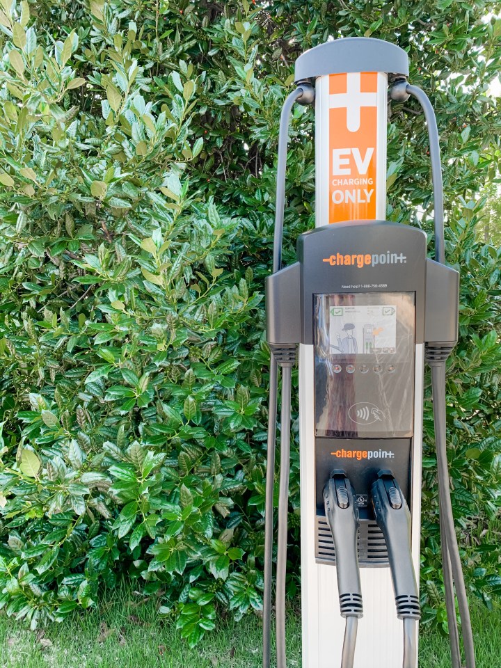Most cities have electric charge stations in parking lots specifically for electric cars so you can charge while you shop, eat, and explore. This one is in the Clinton Presidential Library parking lot.